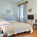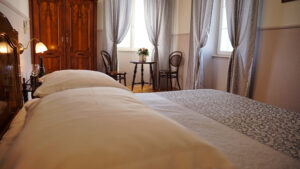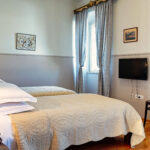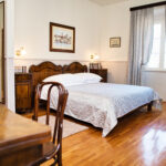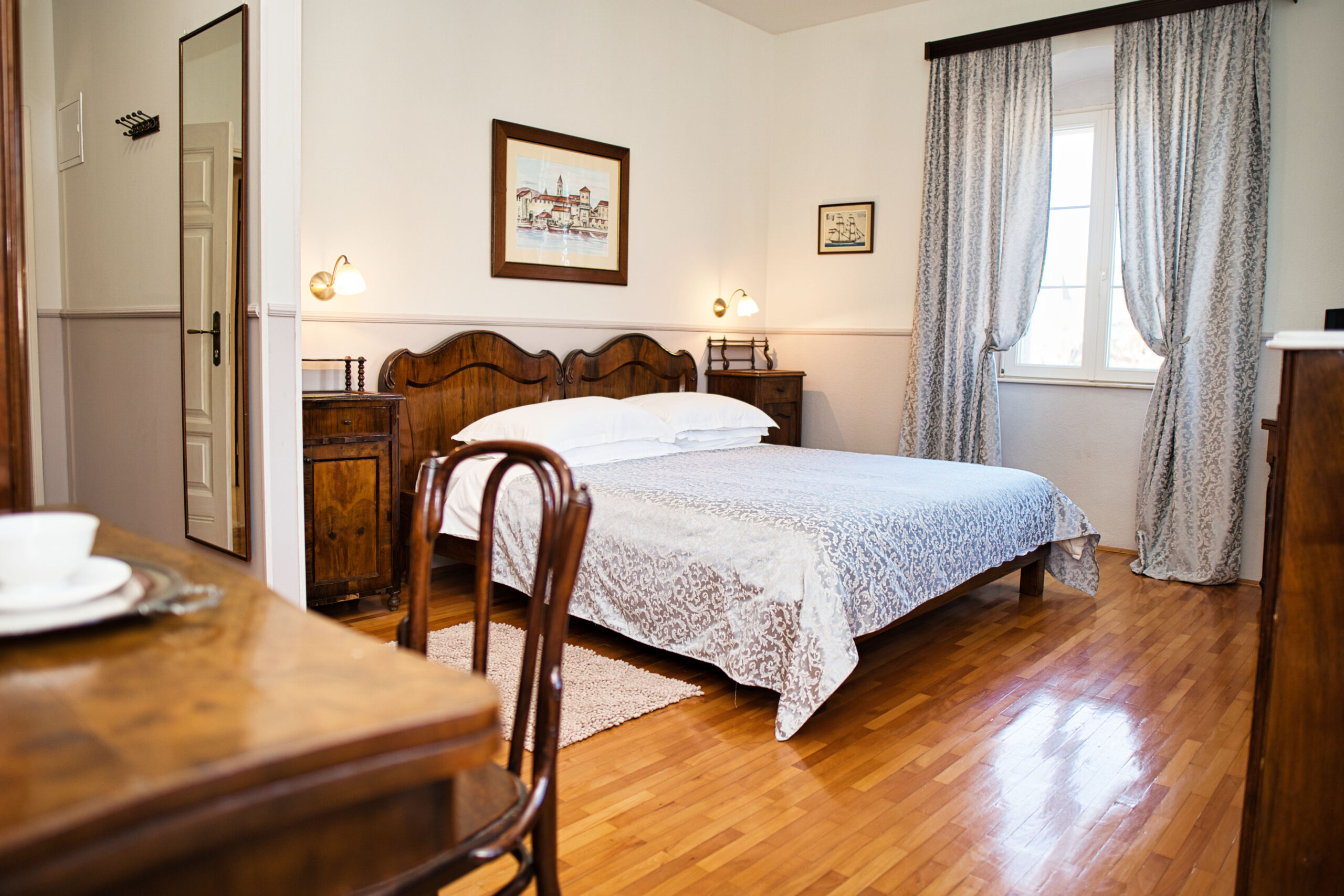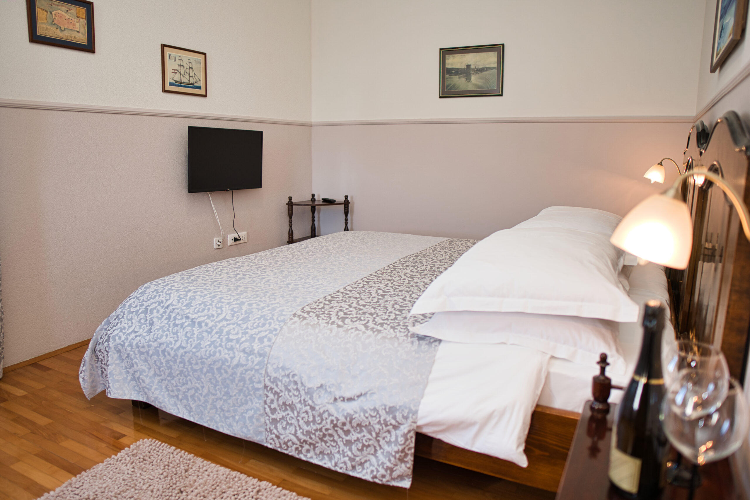 Room cca 25 m2, view of the town and sea, double king size bed 180×200, air con, LCD TV, mini bar, hairdryer, free WI FI, safe box, soundproof windows, common terrace with sea view, continental breakfast included in the price, daily maid service.